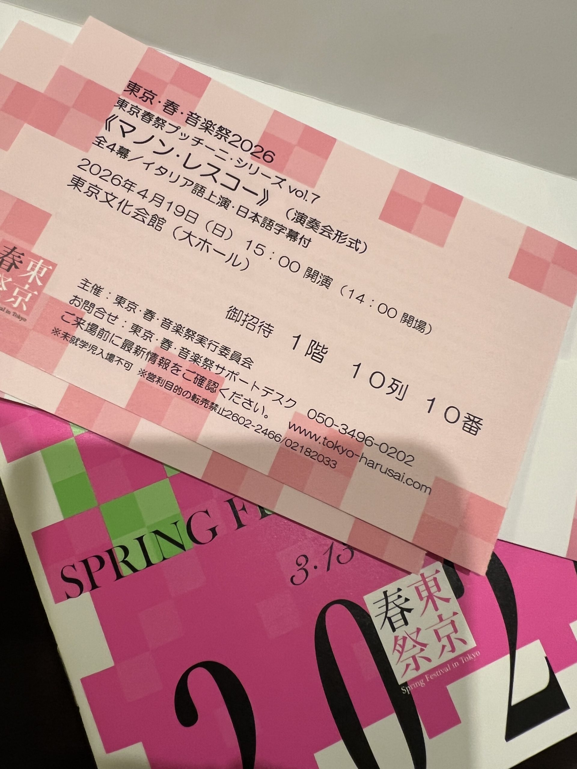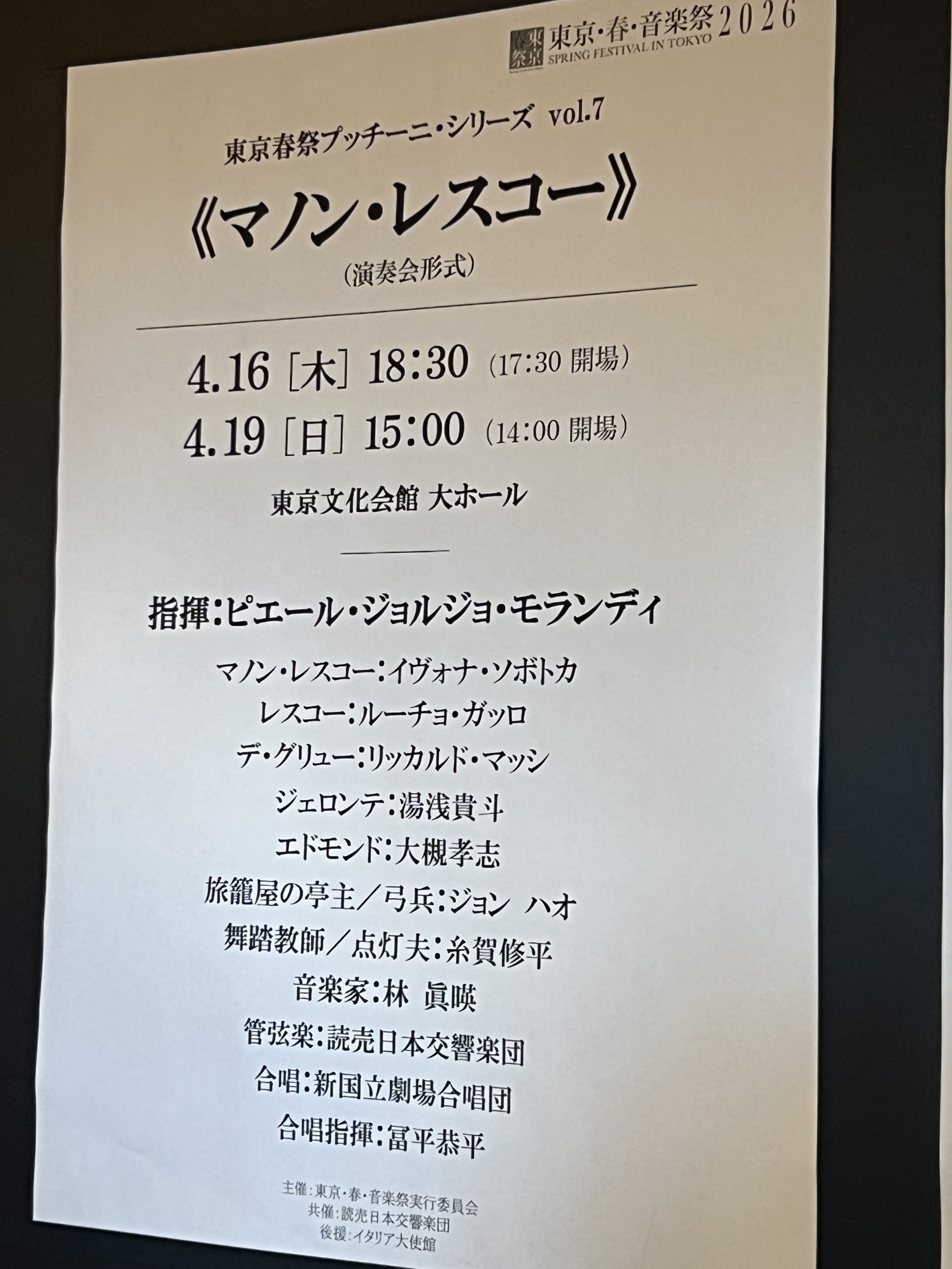 ご招待頂き、「東京・春・音楽祭」の《マノン・レスコー》演奏会形式を拝聴✨