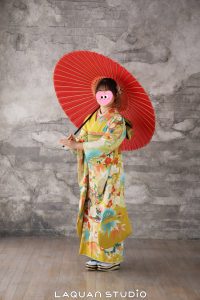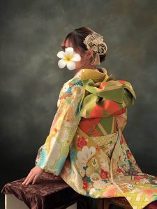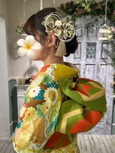 1着目はレンタルの黄色い振袖💛(娘のお気に入り)