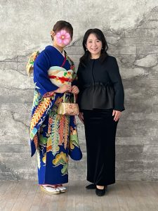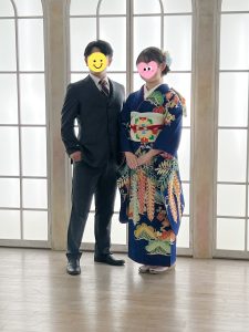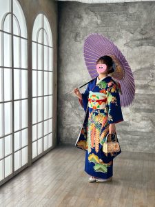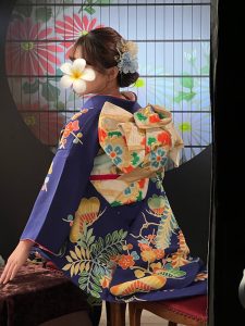 2着目は、私の祖母が母のために仕立てた振袖のうちの一つ、深いブルー🩵。